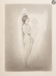 Le premier, consacré à l’Album de vers anciens, comprend un beau dessin en couleurs en frontispice dans un encadrement aquarellé et doré, un titre calligraphié daté de 1932 dans un même encadrement, 20 têtes de chapitre et 19 culs-de-lampe à la mine de plomb, ainsi que 4 dessins hors texte dont 2 à la mine de plomb, un à l’aquarelle et un à la mine de plomb avec rehauts aux crayons. À cela s’ajoutent 78 dessins à la mine de plomb ayant servi d’étude à l’illustration.