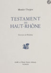 *PALÉZIEUX (Gérard de) – CHAPPAZ (Maurice). — Testament du Haut-Rhône. — Lausanne : André et Pierre Gonin, [1987]. — In-4, 300 x 234 : (2 ff. blancs), 82 pp., (5 ff. 3 derniers blancs), couverture muette.