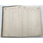 Fort registre in-folio, 602 pp. numérotés au tampon, précédés et suivis de 2 ff. de gardes de papier, écritures cursives, encres rouge et brun foncé. Registre de toile, pièce de cuir havane contrecollée sur le plat supérieur et la mention en lettres d’or «Grand livre», dos lisse, pièce de titre manuscrite au dos, coins et coiffes renforcés avec des écoinçons de cuivre, tranches marbrées.