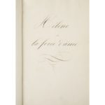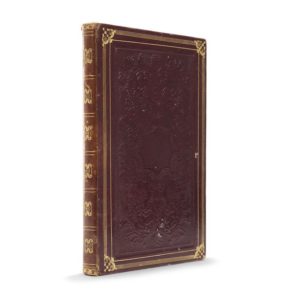 [5] ff. non chiffrés + 25 pp. + [20] ff. écrits, suivis de [22] ff. blancs, fine écriture cursive à l’encre brune. Reliure de veau glacé brun, décor romantique estampé à froid sur les plats encadré par des filets dorés et des fleurons aux angles, dos lisse avec fleurons et filets dorés, gardes de papier moiré blanc, tranches dorées. Vignette Alphonse Giroux contrecollée au verso de la première garde (quelques défauts et épidermures). Emboîtage de cartonnage rigide.