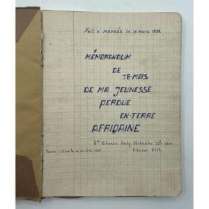 Meknès (Maroc), 1952. In-8, couverture craft, titre dactylographié sur le premier plat., cahier d’écolier interligné.
