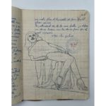 Cahier militaire de souvenirs au Maroc, des 20 ans du 2e classe Roland Joly, à Meknès, durant les 18 mois de son service. Il passera 1ère classe le 16 juillet 1952. Poèmes potaches grivois et de textes paillards en vers ou en prose («Perte d’un pucelage», «comment la femme a été fabriquée» p. 55, «Sermon du curé», p. 53), illustrés dessins libres au crayon en marge (un en couleurs).