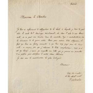 Lettre de Niebuhr adressée au Chevalier d’Artaud, conseiller d’ambassade à Rome