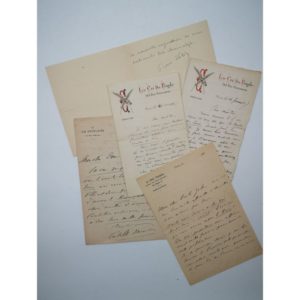 - Catulle MENDES (2 lettres) : 29 mai 1888 (1 p.) et 20 juin 1888 (2 pp). Écrit en tant que directeur de la Vie populaire qui publie en feuilletons plusieurs romans de Zola. La première lettre porte sur la publication à venir du Rêve et plus généralement propose de publier systématiquement ses romans nouveaux : «La Vie populaire, si vous le voulez bien reproduira tous vos romans nouveaux». L’autre lettre demande que sur le roman qui vient après Le Rêve, à savoir La Bête humaine, soit également donné à La Vie populaire. Bel ensemble témoignant de l’importance de Zola comme figure littéraire de premier plan dans le dernier tiers du XIXe siècle, occupant en particulier les secteurs de la presse et du théâtre.