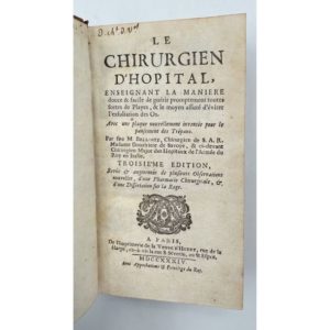 Le second volume a comme titre : Suite du chirurgien d’Hopital, contenant différents traités, du mercure, des maladies des yeux et de la peste, des tumeurs ankistées, des boutons du visage... Troisième édition, revue et augmentée de plusieurs observations nouvelles, d’une pharmacie chirurgicale et d’une dissertation sur la rage.