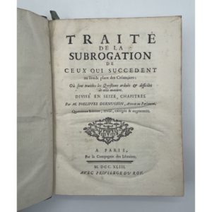 DERNUSSON (Philippe) ou RENUSSON Traité de la subrogation de ceux qui succèdent au lieu et place …