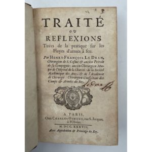 LE DRAN (Henry-François) Traité ou réflexions tirées de la pratique sur les playes d’armes …