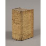 Paris, Claude Rigaud, 1614. [Reliés à la suite : Discours de l’estat de paix & de guerre. Ibid., id., 1614. Suivi de : Le Prince. S.l., s.n., 1613]. 3 ouvrages en un vol. in-12, I : (8) ff., 208 ff., 7 planches dépliantes sur 9 de formations de troupes ; II : (4) ff., 290 ff., (7) ff., (1) f. bl. ; III : (4), ff. 9 (sans manque) à 85, (2) ff. ; vélin de l’époque.