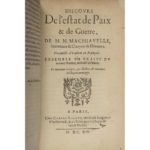 MACHIAVEL L’Art de la guerre. Paris, Claude Rigaud, 1614. [Reliés à la suite : Discours de …