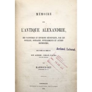 BEY Mahmoud (Mahmoud pacha al-Falaki) Mémoire sur l’antique Alexandrie, ses faubourgs et …