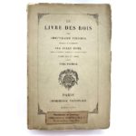 D’une grande rareté, ce maître livre est en partie posthume, Jules Mohl étant mort en 1876, c’est Barbier de Meynard qui le termina. La vie entière de J. Mohl fut consacrée à la publication et traduction de ce texte, chef-d’œuvre de l’épopée nationale de la Perse : le Chahnamè.