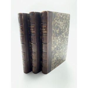 Paris, H. Morel, 1846. 3 volumes in-8, illustrés de 22 planches dont 8 en couleurs et d’une grande carte dépliante de l’Algérie, demi-chagrin, dos à faux nerfs, ornés, plats et gardes marbrés, reliure de l’époque. Illustrations de T. Guérin et Ramus (Tailliart 1718).