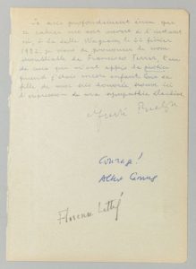 BRETON, André (1896-1966) & CAMUS, Albert (1913-1960). Pièce autographe signée. 1 p. in-8 …