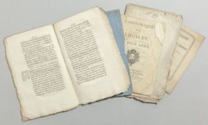 - Panégyrique de Louis XV le Bien-aimé (1748) par Langlois du Bouchet (mouillure).