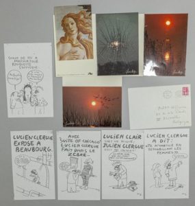 CLERGUE, Lucien (1934-2014), photographe français. Ensemble de 3 cartes autographes signées à ses amis Hoffsummer. 1978, 1981 et 1982. 4 pp. petit in-8 ou petit in-8 oblong. Encre noire ou bleue. Une enveloppe conservée.