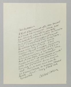 COHEN, Albert (1895-1981). Lettre autographe signée. S.l.n.d. 1 p. in-4.