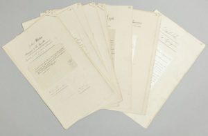 [COLLECTION D'AUTOGRAPHES - baron de BONNEMAINS]. Ensemble de 15 lettres ou billets autographes signés, provenant de la collection du baron Pierre de Bonnemains. Certains documents sont partiellement contrecollés (quelques-uns totalement) sur feuillets in-folio, avec noms, dates, fonctions et biographie manuscrits. Chaque document porte le tampon aux armes de Bonnemains.