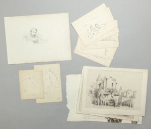 DESSINS. Ensemble de 14 dessins ou manuscrits illustrés.