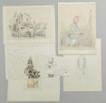 DESSINS. Ensemble de 14 dessins ou manuscrits illustrés. - 5 dessins à l'encre, non signés, …
