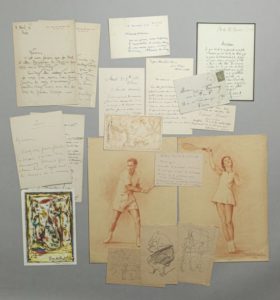On joint une petite oeuvre originale à l'huile (18 x 13 cm) signée du peintre italien Pino della Selva (1904-1991) ; 5 feuilles de croquis de Léonce Petit (1839-1884), l'un signé.