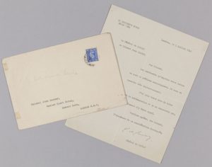 Émouvante lettre du Général de Gaulle, aux premières heures de son exil britannique. « Mon Colonel. Les sentiments qu'exprime votre lettre me sont un précieux encouragement. Je vous en remercie très chaleureusement. J'ai pris bonne note de votre offre de collaboration et je ne manquerais pas, éventuellement d'y faire appel. Veuillez agréer, Mon Colonel, l'assurance de ma considération distinguée ».
