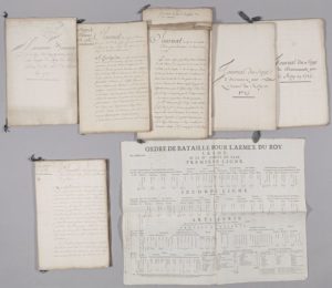 - « Journal du siège de Namur en 1746 par un détachement de l'armée du Roy sous les ordres de S.A.S. Monseigneur le comte de Clermont ». Manuscrit de 44 pp., broché.