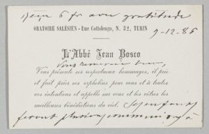 SAINT JEAN BOSCO (1815-1888). Carte de visite autographe. 9 décembre 1885. 1 p. in-32 oblong.