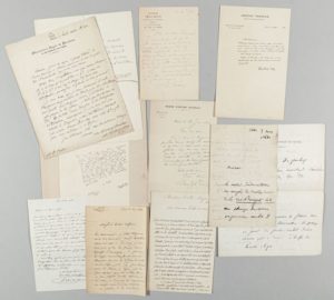Alexandre Brongniart (5, en-têtes de la Manufacture de Sèvres), Alexandre von Humboldt (à la Société d'acclimatation de Prusse, en allemand), Léonce Élie de Beaumont, Constant Prévost, Pierre-Paul Dehérain, Edmond Perrier, Jean Chacornac (à l'abbé Moigno), Arcisse de Caumont (2), etc.