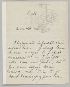 Jules Tellier : « Absolument impossible venir aujourd'hui. Je charge Vanier de vous envoyer le paquet nécessaire. Je compte aller vous voir jeudi, où que vous soyez. Mais écrivez-moi d'ici là si vous déménagez pour Vincennes. Bonjour de Raymond (de la Tailhède) et à vous, du fond du coeur, ô Maitre ! [] ».