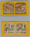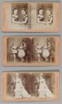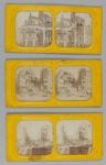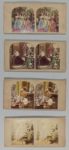 Remarquable collection de plus de cent cinquante (150) cartes stéréoscopiques dont nombreuses fantaisies (55) majoritairement anglaises (saynètes comiques dont apparition d'un fantôme) certaines colorisées (39), suite dessinée complète des Milles et une nuits (12), suite complète de La Muette (12), Barbe bleue (6), série des Théâtres de Paris dont Guillaume Tell (10), Cendrillon, Mignon, Yedda, Célébrités Théâtrales (12) belles série de vues de Paris (22) dont destructions de la Commune incluant de rares exemplaires à effet de perforations et de mises en couleurs simulant les incendies, ballon, intérieurs de palais et de bâtiments publics, Portrait de Napoléon III, scènes de genres (8) (rémouleur, jeu de boule, jardinage)