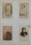 Au-delà des portraits de souverains et d'artistes dont de nombreux peintres d'après des tableaux ou des gravures, plusieurs portraits photographiques d'hommes politiques (Bismarck, Thiers), de musiciens (Rossini, Verdi), d'hommes de lettres et de philosophes dont superbe portrait de Lamartine par Nadar, Victor Hugo, Alexandre Dumas (2), Dumas fils, du Bois Reymond, Schopenhauer, Dickens, Claude Vignon d'actrices (Adelaïde Ristori), quelques cartes mosaïques, en fin d'album deux étonnants portraits de Chinois photographiés à Paris et à Malte, une curieuse image d'un ouvrier tanneur ou teinturier par J. Prökl à Franzensbad (Tchéquie).