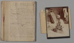 Ensemble composé d'un très macabre tirage albuminé contrecollé sur carton (contretype d'époque de la scène de crime) et d'un cahier entièrement rédigé à l'encre de 67 pages constituant le brouillon du rapport d'expertise que le Docteur Deporte (ex-interne des hôpitaux de Lyon), entendait livrer au public à l'issu du verdict contraire à ses opinions, dans cette curieuse d'un probable assassinat maquillé en suicide, madame Meunier ayant été retrouvée pendue et égorgée dans son grenier, son mari, ancien boucher, réputé alcoolique ayant naturellement était soupçonné du meurtre pour être finalement acquitté