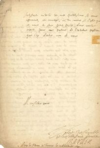 Seule lettre connue, citée par Raoul Bonnet qui n'a pu en reproduire la signature (vendue par Eugène Charavay le 14 avril 1886).