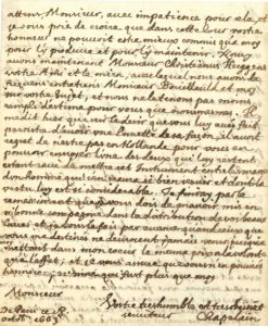 28 juin 1663. « Ayant conceu une tres haute estime de vous des le temps que mon ami intime Monsieur GASSENDI dheureuse mémoire me communiqua vostre excellente Selenographie » Son estime s'accrut par ce que M. Bernier lui rapporta, et il se réjouit d'avoir eu l'occasion de répondre au « genereux dessein » du Roi à l'égard des gens de lettres, en lui signalant « des Estrangers habiles » dignes de ses grâces. Une lettre et une lettre de change de M. COLBERT, intendant général des Finances, vont lui parvenir, comme marque de la bienveillance du Roi. « J'exhorterois un coeur moins noble que le vostre a la ressentir selon la grandeur du Prince qui vous l'a donnee, et a en scavoir un gré proportionné à Monsieur Colbert, le luy faisant voir par vostre response, comme a celuy qui y a puissamment contribué » 18 octobre 1663. Ses lettres prouvent combien il était digne des bienfaits du Roi et du « grand Homme » ; il promet de maintenir son honneur à la Cour. « Nous avons maintenant Monsieur Christianus HUYGENS vostre Ami et le mien, avec lequel nous avons de frequens entretiens Monsieur BOUILLAUD et moy sur vostre sujet » Ce dernier regrette de ne pas être en Hollande, pour pouvoir lui envoyer une « lunette de sa façon »