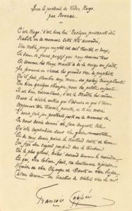 COPPÉE François (1842-1908) [AF 1884, 10e f]. POÈME autographe signé « François Coppée », Sur le portrait de Victor Hugo, par Bonnat ; 1 page in-4.