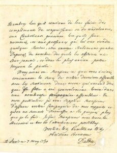 DUBOS Jean-Baptiste, abbé (1670-1742) diplomate, historien et théoricien ; il fut Secrétaire perpétuel de l'Académie [AF 1720, 39e f]. L.A.S. « DuBos », Paris 7 mai 1730, à M. de LA VISCLÈDE, secrétaire perpétuel de l'Académie à Marseille ; 2 pages in-4, adresse avec reste de cachet de cire rouge (bords renforcés).