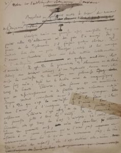 Certaines pages sont écrites par France au verso de faire-part imprimés de son mariage avec Valérie Guérin (1877). On trouve au verso d'autres pages une liste des grands écrivains d'Angleterre et d'Allemagne (Chaucer, Shakespeare, Byron, Goethe, Heine, etc.) et une note (projet de titre ?) sur « Daphnis et Chloé. Suppt à Adolphe ». Sept pages sont écrites au verso d'autres manuscrits autographes de premier jet où il est question d'Armand Silvestre, Sully-Prudhomme, Claude Bernard, Berthelot, Darwin, etc.