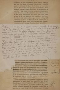 Notes préparatoires sur les projets de F. de Lesseps (au dos d'un brouillon sur M. Bergeret) et l'histoire du Canal de Suez.