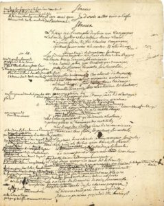 Brouillons, souvent très raturés et corrigés. Des Stances à un ami que je devois aller voir à la fin de l'automne : « L'hiver ne couvre plus de glace nos campagnes » Saint Paul à Philémon, épître (4 pages in-8), mise au net avec quelques corrections, dont nous citerons le début :