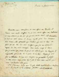 Il lui offre son livre Mes Pensées : « Je vous admire, je suis sur que je vous aurois aimé. M. Rozambert & tous vos amis m'ont si souvent repeté qu'en vous l'homme étoit encore plus estimable que l'auteur, je vois ici tant de gens qui ont tout leur coeur en esprit [VOLTAIRE], que j'ai un véritable regret de vous avoir manqué. Vous auriez vengé les lettres que je cultive, que j'aime, & que je vois cultivées par des hommes si méprisables que je suis sur le point de les haïr »