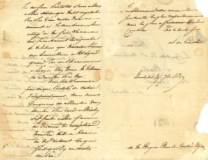 Monculot 29 septembre 1829, à la comtesse de SAINT-AULAIRE à Étioles « Si vous êtes à Étioles et que M. LEBRUN soit dans votre voisinage soyez assez bonne pour lui demander si dans le cas où je serais présenté pour succéder à M. DARU à l'académie il me donnerait sa voix et pourrait m'en assurer quelques autres de ses amis. Si comme on me le mande les chances s'offrent très probables pour moi je me ferai présenter sans aller à Paris chose qui m'est impossible pour plus d'une raison dans ce moment ci. Je vous serais bien obligé de me faire savoir très franchement la réponse de M. Lebrun qui m'avait prévenu avec bienveillance a cet égard quand j'ai eu l'honneur de le voir chez vous. M. VILLEMAIN est admirable pour moi [...] Mon père met à ceci un vif interet ce qui fait que j'y en mets un peu »... - À un vicomte : il compte sur la voix et l'influence de son père. « De tous côtés on m'offre des voix. J'ai pu en compter 16 ou 17 et si le duc de Bassano se retire 19 ou 21. Mais j'ai peur de M. de SÉGUR, donnez moi un coup de main. Je ne veux absolument pas aller à Paris avant le jour de l'élection. J'ai écrit mes raisons à tous mes amis de l'académie. [] je ne veux pas faire 200 lieues pour un second soufflet. Je rougirais pour moi et devant mes amis »...