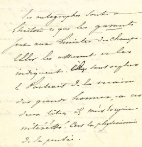 « Les autographes sont à l'histoire ce que les garants sont aux limites des champs. Elles les assurent et les indiquent. Ils sont de plus le portrait de la main des grands hommes ; à ces deux titres ils m'ont toujours intéressé. C'est la physionomie de la pensée ». Il remercie Chambry de ceux qu'il met à sa disposition [pour écrire son Histoire des Girondins], et il compte faire usage le soir même « d'un des faits si tragiques dans sa trivialité [] Shakespeare n'aurait pas mieux inventé que ce tarif des fossoyeurs d'une monarchie »