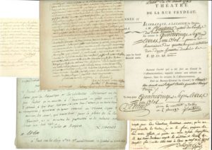 Barthélemy PLANTERRE (1793). Antoine-Alexandre PONSINET le jeune (à Baculard d'Arnaud). Chanoine F. PRÉVOST (L.A.S. avec poème, Amiens 1742). Antoine-François QUÉTANT (à M. Guy). Pierre-Honoré ROBBÉ DE BEAUVESET (1790, à Baculard d'Arnaud). Thomas ROUSSEAU (1788). Pierre Barnabé Farmain de ROZOI (cession à la veuve Duchesne de son manuscrit Le oui et le non, ou Mémoires de Madame de Veuville). Philippe Plancher dit VALCOUR (1808, à Palloy). Augustin marquis de XIMENÉS (1800, candidature de sous-bibliothécaire à l'Arsenal ; 1815, et poème avec vers de Pieyre).