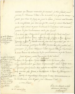 Il fait l'éloge des manières et du style gracieux du prince, « dignes de ce que nous appellons ici la vieille cour », et le remercie du thé, des fourrures, et d'une « robe de mandarin » qu'il mettra « les matinées ou je ferai le rôle d'un vieux lettré avec les jeunes gens qui me consultent sur leurs ouvrages. [] Je suis très sensible, mon prince, à la confidence que vous me faites de la digne apostille que votre auguste imperatrice a mise à votre lettre. C'est un maître-roi que cette CATHERINE ; et c'est d'elle qu'on doit apprendre à connoître les hommes, à les employer et à les faire valoir. Sa façon de regner est simple, franche, naturelle ; on voit qu'elle est née pour les grandes choses ; un empire à gouverner ne lui pese pas une once ; elle lui donne le branle comme une autre femme à son rouet, et manie un sceptre avec la même aisance qu'Hercule manioit sa massue. Je vous félicite, mon prince, de l'honneur d'être son ministre » Il tourne un compliment sur les écrits de l'impératrice ; puis, ayant barré quelques lignes sur un « code chinois » dont parlait le prince, il en biffe un autre concernant les opéras dont il a refait les livrets pour PICCINNI : « On vient de reprendre l'opera de Roland et il a eu encore plus d'applaudissements que dans la nouveauté. Celui d'Atys aura le meme sort. C'est, à tous égards, un modèle. Il faut donner aux oreilles que GLUCK a barbarisées, le tems de s'humaniser ». Il ajoute qu'un mémoire de GAILLARD « sur l'esclavage et la servitude », et une traduction de Sophocle par LA HARPE, lus en séance publique de l'Académie, ont été « fort applaudis »