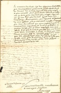 MÉZERAY François-Eudes de (1610-1683) historien ; élu en remplacement de Voiture, il succéda à Conrart dans la fonction de Secrétaire perpétuel [AF 1648, 33e f]. L.A.S. « Mezeray », 31 janvier 1669, à Monseigneur [Jean-Baptiste COLBERT ?] ; 2 pages in-fol. (reste de montage à fenêtre).