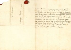 NICOLE Pierre (1625-1695) théologien, moraliste et polémiste janséniste, un des Solitaires de Port-Royal. L.A.S. « Nicole », [1666 ?], à Jean RACINE ; demi-page in-4, adresse avec cachet de cire rouge à la devise Summa Libertas.