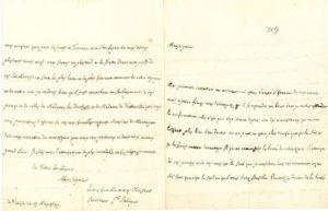 Venise 17 mai 1749, à Monseigneur, exprimant sa gratitude pour sa bonté : « nous irons mon frere et moi habiter ce bienheureux Palais que je regarderai comme le temple de la bonté de l'hospitalité et de touttes les vertus » Ils ont reçu hier confirmation d'une nouvelle qu'ils appréhendaient, mais qui a amené le public à rendre justice « aux lumieres, a la capacité, et a l'integrité de celui qui n'a peut estre de persecuteurs que nos veritables ennemis » Paris 20 mars 1750, à Charles de CAYLUS, évêque d'Auxerre, dont le cardinal Passionei souhaite recevoir les ouvrages 3 janvier 1762, au Président de BROSSES (nom biffé). Condoléances sur la mort de sa femme ; il rend compte de la lecture à l'Académie des inscriptions du mémoire du Président sur le Pont-Euxin, et parle des travaux de leur ami Foncemagne...