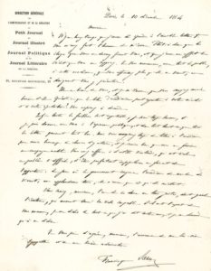 SARCEY Francisque (1827-1899). L.A.S. « Francisque Sarcey » et MANUSCRIT autographe signé, 1864-1889 ; 1 page in-4 à en-tête du Petit Journal, et 5 pages et demie in-4.