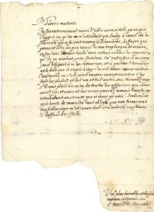 Il est « marri d'estre venu si tost, parce que j'appris icy qu'on ne m'attendoit que Lundy à cause de la solennité qui se faisoit encores le Dimanche [...] Patience. Un'autre fois je ne seray pas si diligent à m'en retourner, et à quitter l'honneur et le bien que je reçois à jouyr de vre douce conversation ». Il supplie sa tante de l'honorer « du soing de toutes les affaires que vous aurez icy, et vous ne me remarquerez jamais lasche ny nonchalant au service que je vous ay voüé. [] Ma volonté suppléera le deffaut des effects »...