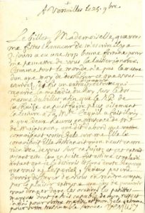 Il veut l'informer de la « trop bonne fortune » qu'a eue le billet qu'elle lui a écrit : « Comme tout le monde n'a pas le mesme don que moy de dechifrer ce que vous escrivez, j'en fis un extrait de ma main de tout ce qui regarde la maladie du Roy sur le dos mesme du billet, afin que le RP de LA CHAIZE en pust faire plus aisement la lecture a Sa Mte. Ce qu'il a fait il n'y a que deux heures en presence de Me de MAINTENON, qui dit d'abord que connoissant vostre zele comme Elle le connoissoit Elle sestonnoit qu'on n'eust encore rien veu de vous sur ce sujet ; et cet extrait ayant este leu ensuite fut estimé et aplaudi autant que je le desirois et sans doute beaucoup que vous ne l'esperiez »...